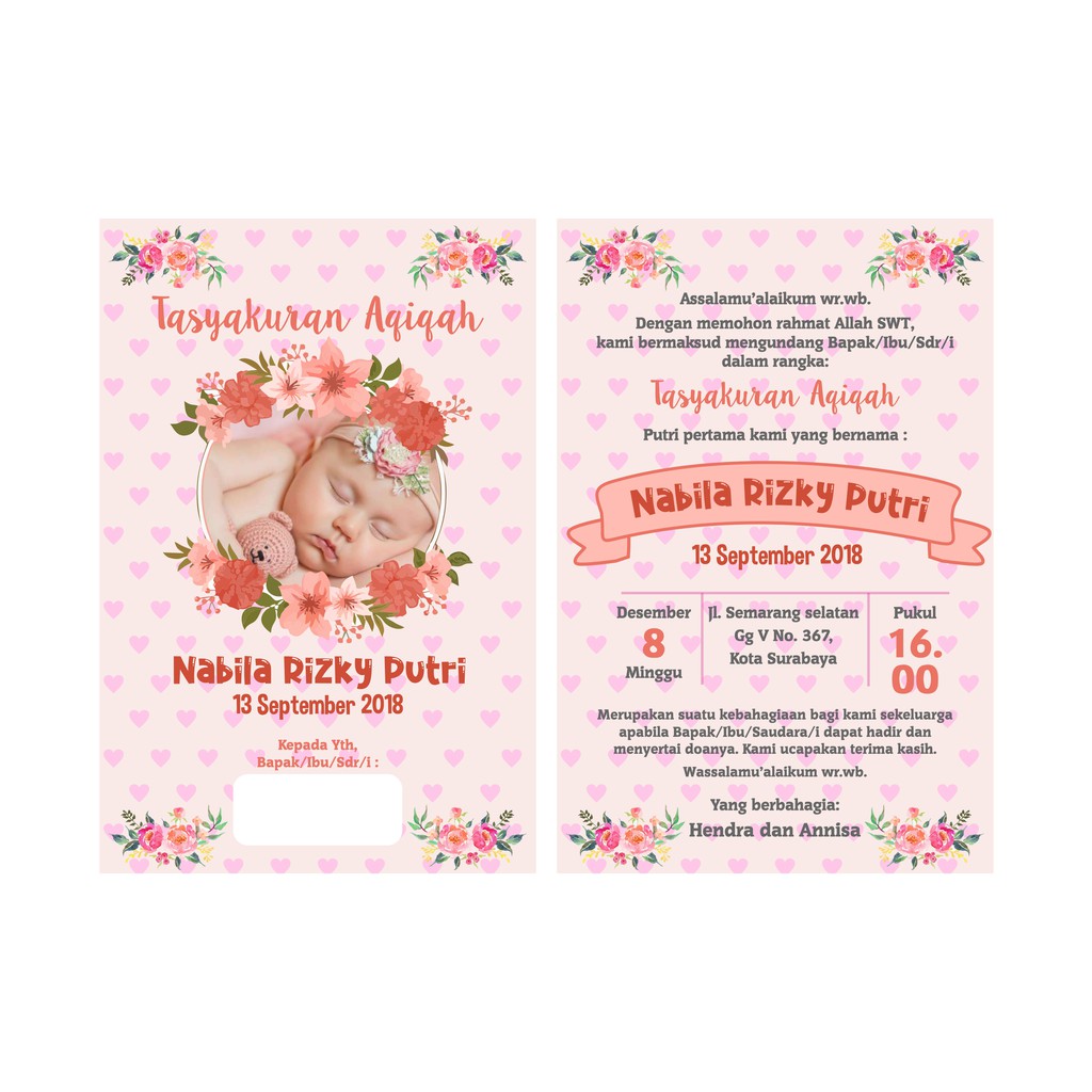 Undangan Tasyakuran Bayi : Undangan Tasyakuran Aqiqah Desain Undangan Aqiqah Bayi Shopee Indonesia - Alhamdulillah telah lahir bayi kami dengan selamat cantik dan sehat pada tanggal .
